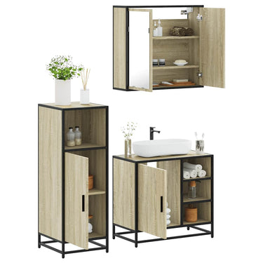 3-delige Badkamermeubelset bewerkt hout sonoma eikenkleurig