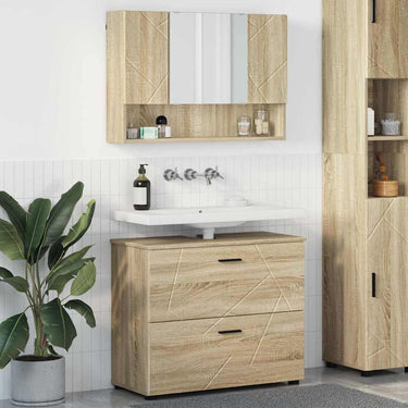 De badkamer meubelset van engineered wood maakt moderne stijl en praktisch design perfect samen. Met zijn strakke lijnen en smooth uitstraling, geeft deze set je badkamer een boost, terwijl je veel opbergruimte hebt. Dit is precies wat je nodig hebt als je houdt van eenvoud en slimme ruimte-indeling, met een slanke look en een stevige houten structuur die perfect is voor stadswoningen. De chique en minimalistische vibe van deze set creëert een ontspannen sfeer in je badkamer, waardoor de algehele ambiance verbeterd wordt. Belangrijkste kenmerken zoals spiegelkasten en ruime planken zorgen ervoor dat je al je toiletartikelen, handdoeken en andere spullen goed kunt opbergen.