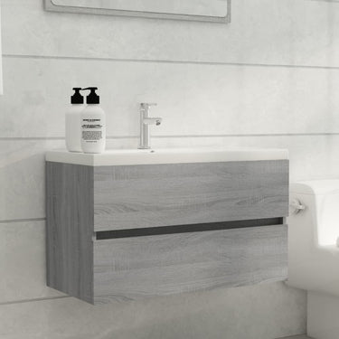 Wastafelkast met ingebouwde wasbak bewerkt hout grijs sonoma