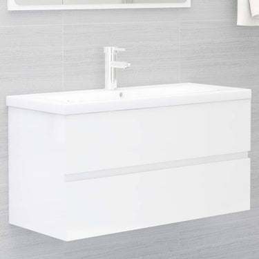 Wastafelkast met ingebouwde wastafel bewerkt hout hoogglans wit