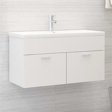 Wastafelkast met ingebouwde wastafel bewerkt hout wit