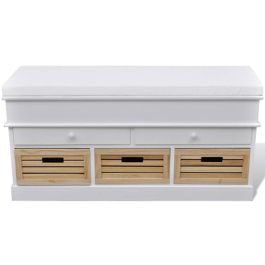 Opbergbankje/halbank met kussen, 2 lades en 3 kratten