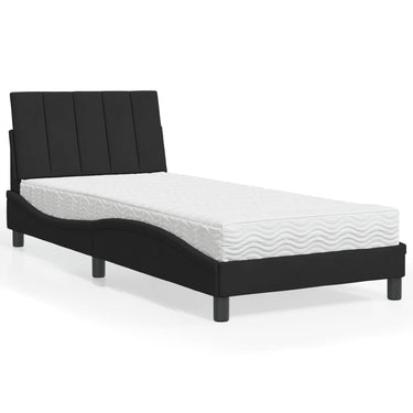 Bed met matras "Hanko" fluweel zwart 90x190 cm