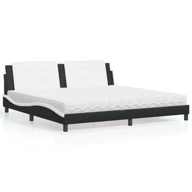 Home Winkel Slapen Bed met matras "Zadar" kunstleer zwart en wit 200x200 cm