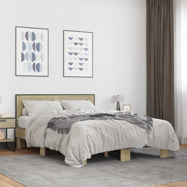 Bedframe bewerkt hout metaal sonoma eikenkleurig 140x200 cm