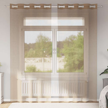 Gordijnen voile met doorvoertules 2 st lichtbruin