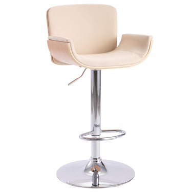 Deze barstoel, met een opvallend, eigentijds design, is niet alleen esthetisch maar ook zeer comfortabel. De stoel, bekleed met kunstleer, is comfortabel gevoerd. Het houten frame draagt bij aan de unieke schoonheid en stijl. Het metalen frame is zeer stevig, terwijl de ingebouwde voetensteun en het ergonomische design bijdragen aan het zitcomfort. Het gasveermechanisme stelt je in staat om de hoogte van de barstoel aan te passen. Deze barstoel is een geweldige aanvulling op elke bar of eetruimte.