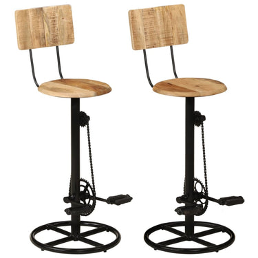 De barkrukken zijn gemaakt van massief mangohout en ijzer en zijn uiterst stabiel en duurzaam. De barkrukken zijn uitgevoerd met voetsteunen die op fietspedalen lijken, deze dragen bij aan het zitcomfort van de set en de industriële stijl. Iedere stap in het constructieproces wordt met uitzonderlijke zorg uitgevoerd, of het nu gaat om hercombineren, polijsten, verven of lakken. Daarnaast zorgen de rugleuningen voor extra zitcomfort.