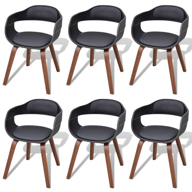 Eetkamerstoelen 6 st gebogen hout en kunstleer zwart
