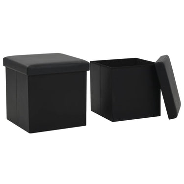 Opbergkrukken inklapbaar 2 st kunstleer zwart