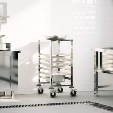 Verbeter de efficiëntie van uw keuken met de dienbladenwagen, ontworpen voor duurzaamheid en flexibele beweging.