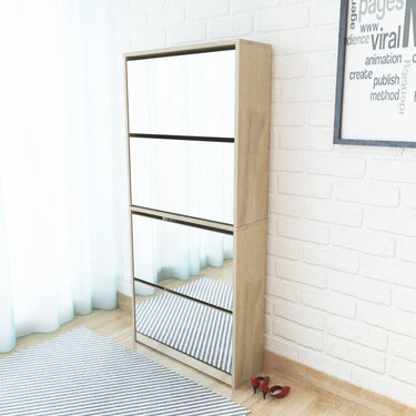 Home Winkel Opbergen Schoenenkast met 4 spiegels 63x17x134 cm eikenhout