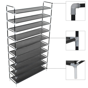 Schoenenrek met 10 schappen metaal en ongeweven stof zwart