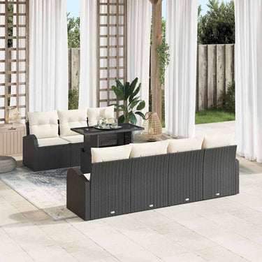 Home Winkel Loungebanken Tuin Sofa Set met kussen 8 pcs Zwart 100 x 55 x 73 cm Poly riet