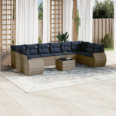 Home Winkel Tuinbanken 11-delige tuinbankset met kussens, grijs polyrotan