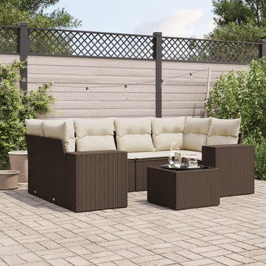 7-delige Loungeset met kussens poly rattan bruin