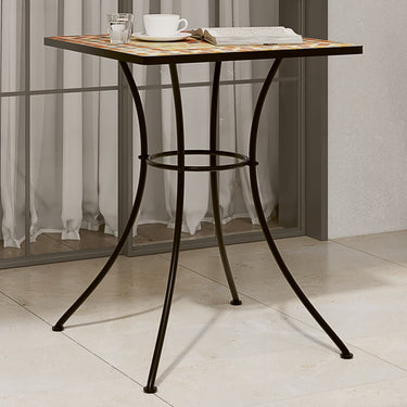 Deze mozaïekbistrotafel heeft een keramisch tafelblad en is een echte blikvanger in je tuin, op je balkon of terras.