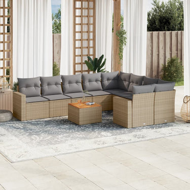 10-delige Loungeset met kussens poly rattan gemengd beige