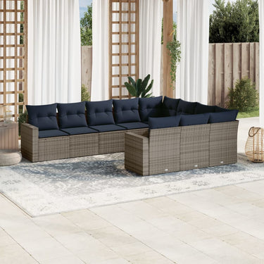 Home 10-delige Loungeset met kussens poly rattan grijs