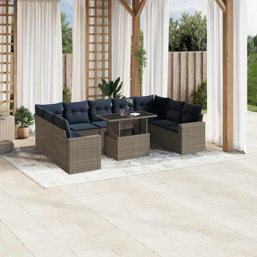 Home 10-delige tuinbankset met kussens, grijs polyrotan