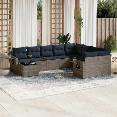 Home 10-delige tuinbankset met kussens, grijs polyrotan