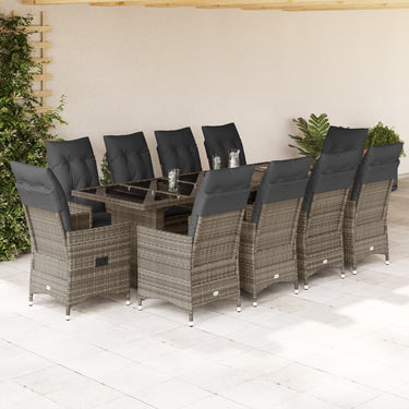 Home 11-delige Bistroset met kussens poly rattan grijs