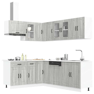 11-delige Keukenkastenset Kalmar bewerkt hout grijs sonomaeiken