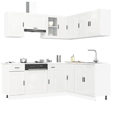 11-delige Keukenkastenset Porto bewerkt hout glanzend wit