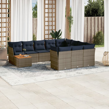Home 11-delige Loungeset met kussens poly rattan grijs