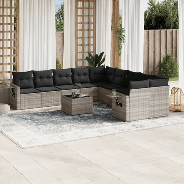 11-delige Loungeset met kussens poly rattan lichtgrijs