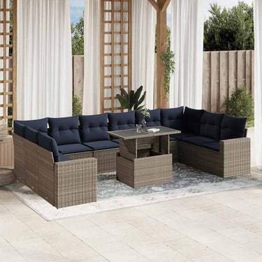 Home 11-delige tuinbankset met kussens, grijs polyrotan