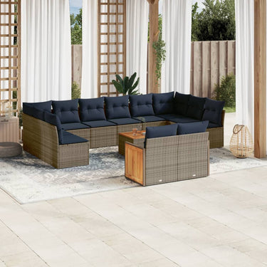 12-delige tuinbankset met kussens, grijs polyrotan