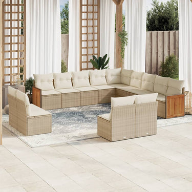 13-delige Loungeset met kussens poly rattan beige