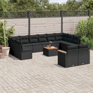 13-delige Loungeset met kussens poly rattan zwart