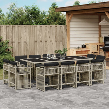 13-delige Tuinset met kussens poly rattan lichtgrijs
