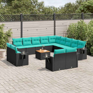 Home 14-delige tuinbankset met kussens van zwart polyrotan