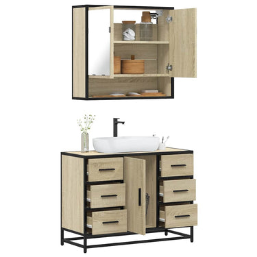 2-delige Badkamermeubelset bewerkt hout sonoma eikenkleurig