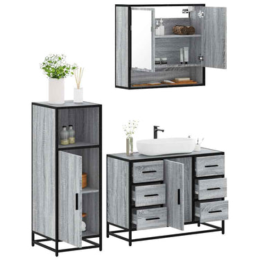 3-delige Badkamermeubelset bewerkt hout grijs sonoma eikenkleur