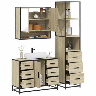 3-delige Badkamermeubelset bewerkt hout sonoma eikenkleurig