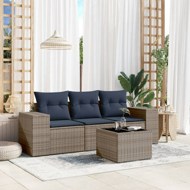 Home 4-delige tuinbankset met kussens, grijs polyrotan