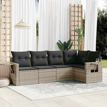 5-delige Loungeset met kussens poly rattan lichtgrijs