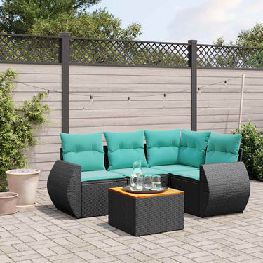 5-delige tuinbankset met kussens van zwart polyrotan