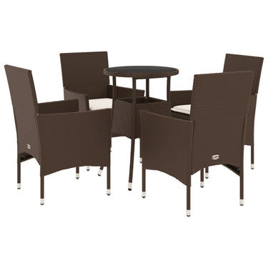 5-delige Tuinset met kussens poly rattan en glas bruin