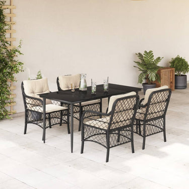 5-delige Tuinset met kussens poly rattan zwart
