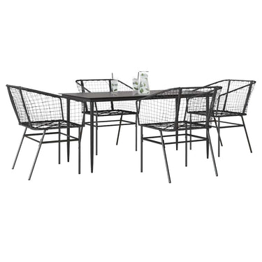 5-delige Tuinset poly rattan glas zwart