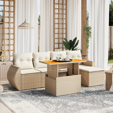 6-delige Loungeset met kussens poly rattan beige