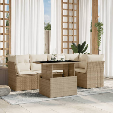 6-delige Loungeset met kussens poly rattan beige