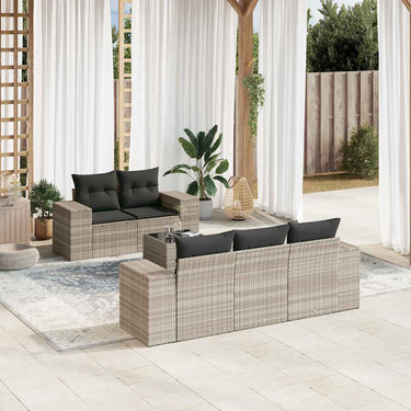 6-delige Loungeset met kussens poly rattan lichtgrijs