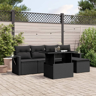 6-delige Loungeset met kussens poly rattan zwart