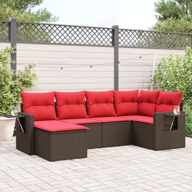 6-delige tuinbankset met kussens, bruin polyrotan